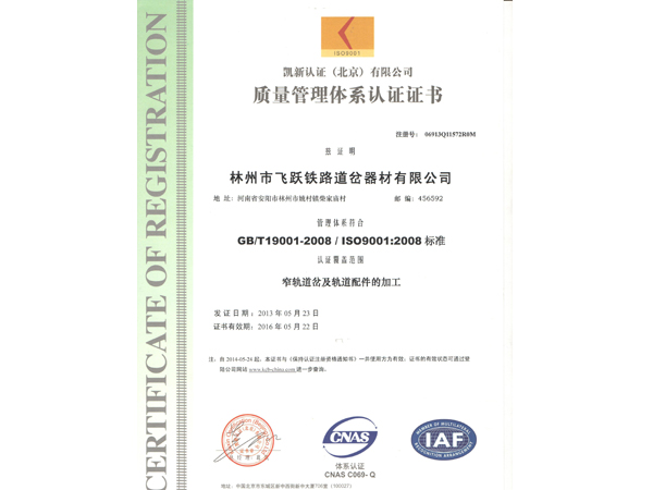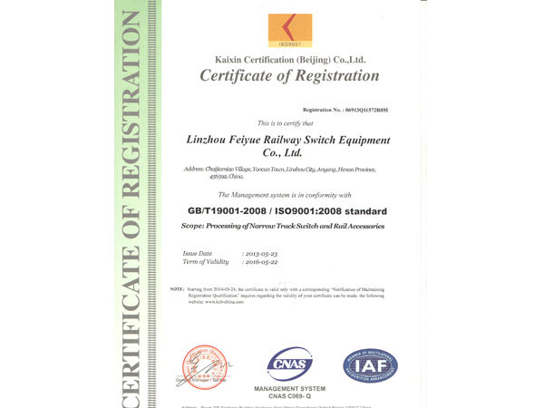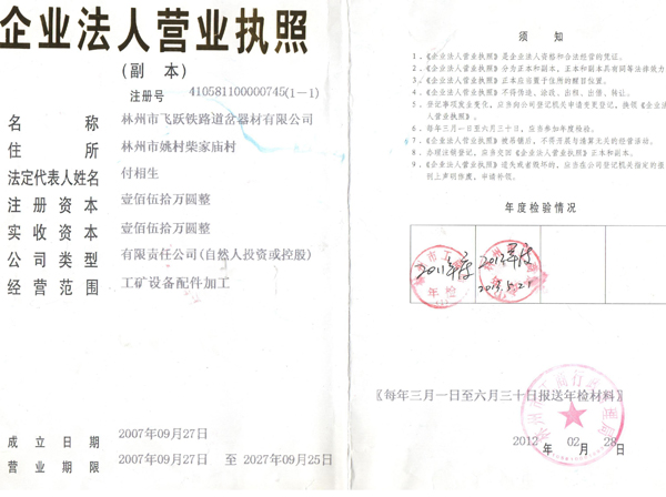 林州市飛躍鐵路道岔器材有限公司位于舉世聞名的世界八大奇跡之一“人工天河”紅旗渠畔,晉、冀、豫三省交界處,交通、通訊便捷。 公司擁有職工和管理人員120多人,高工5名,技術人員23人。擁有先進的鑄造機加工設備和完整的質(zhì)量檢測體系,使我公司連續(xù)數(shù)年被評為“重合同守信用”和“重量管理”先進單位。公司生產(chǎn)的主要產(chǎn)品有:輕重軌道岔及各種工具。按種類區(qū)分有:單開道岔、對稱道岔、三開道岔、渡交組合道岔等。特殊要